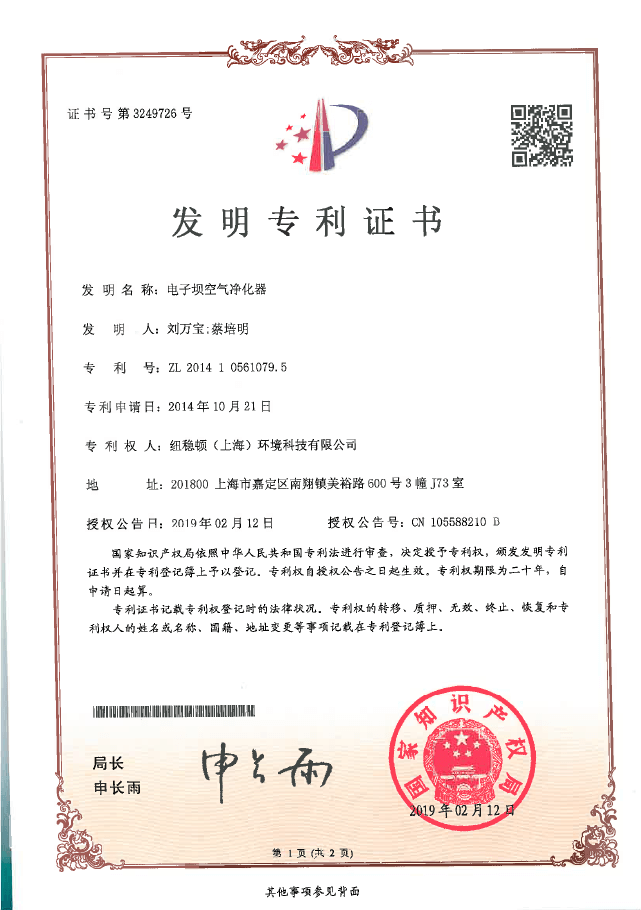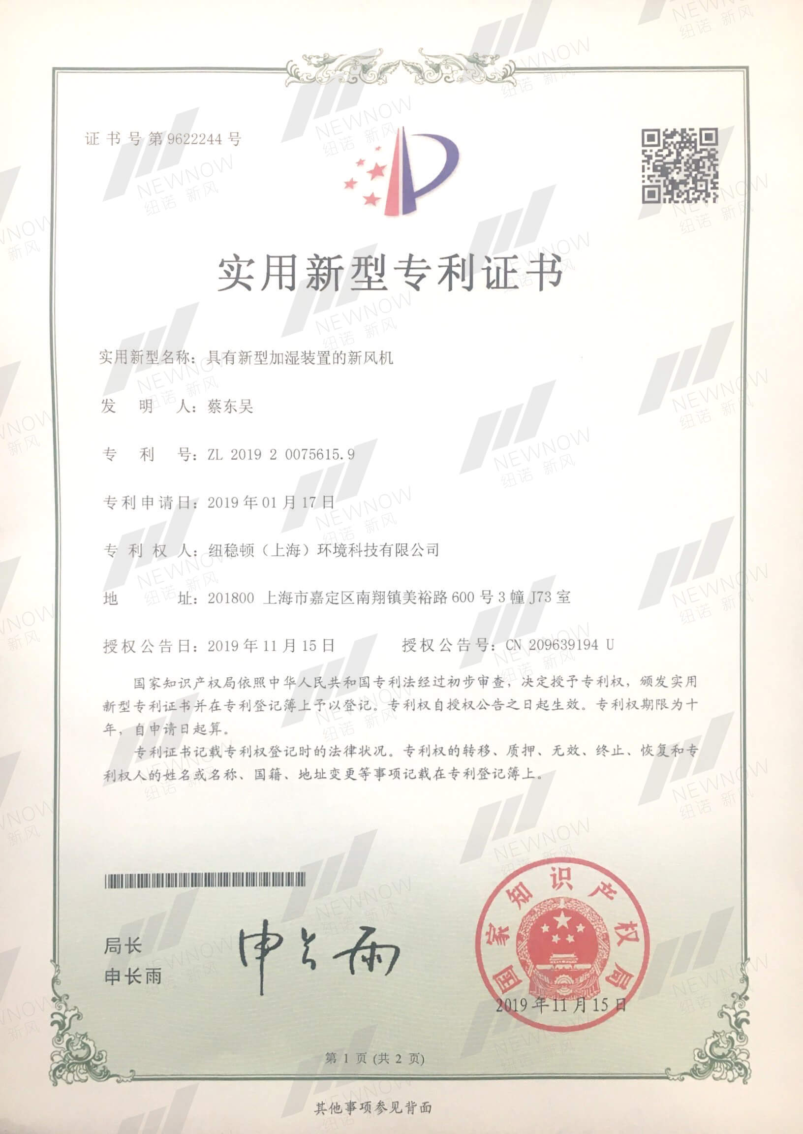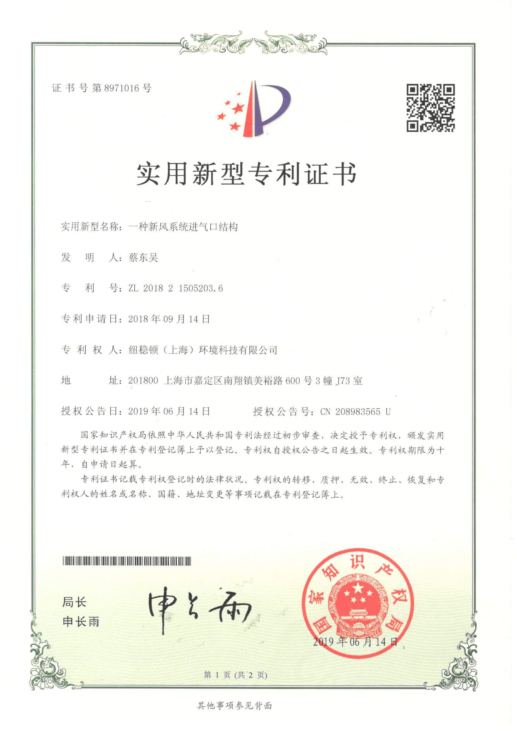紐諾(中國)已獲授權(quán)專利近20個,同時參與多項國家新風行業(yè)標準制定。